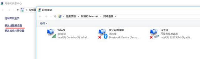 2.在弹出的窗口点击,更改适配器设置,会弹出当前网卡界面
