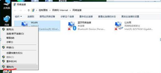 右击网卡,点击属性