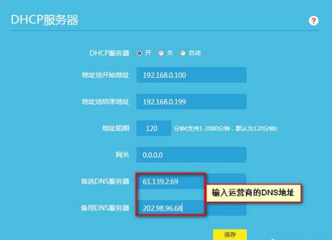 ② 然后把这2个DNS地址填写在路由器的DHCP服务器中的DNS地址一栏里;
