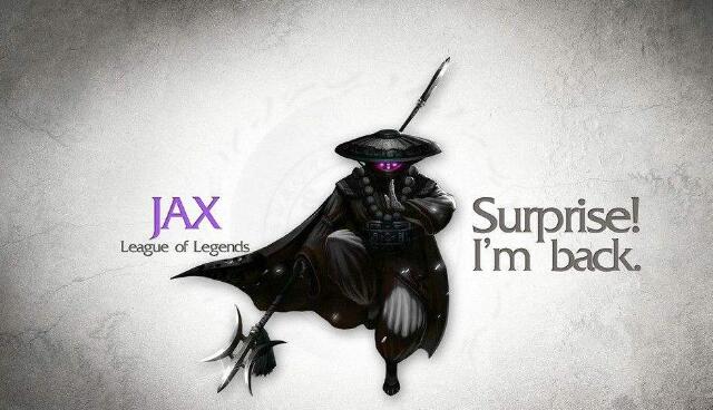 这套阵容是我能想到的最好的阵容了!贾克斯克制剑圣,可以入侵野区,也可以吃线上资源,后期剑圣依旧打不过武器,基本上可以把剑圣从头压制到结束!