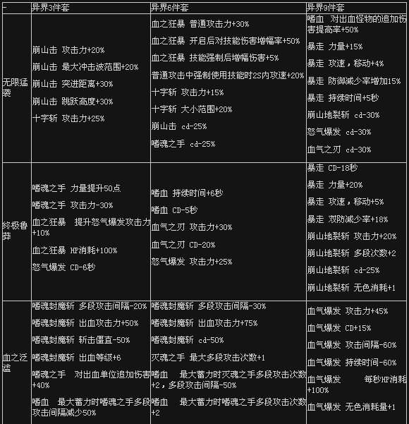 dnf异界装备改版属性大全 狂战士异界套改版属性