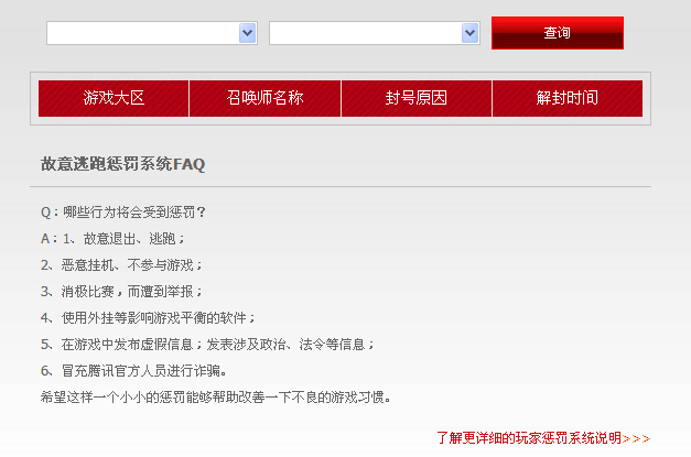LOL封号查询系统已经上线快半年多了,我想有好多玩家去查询过吧,今天小编就在这里说说LOL封号查询系统 LOL封号查询地址。希望能多大家有所帮助。大家可以在封号查询系统查看到自己最近一次被封号的解封时间,还可以在玩家惩罚系统说明中查看到详细的封号原因说明。